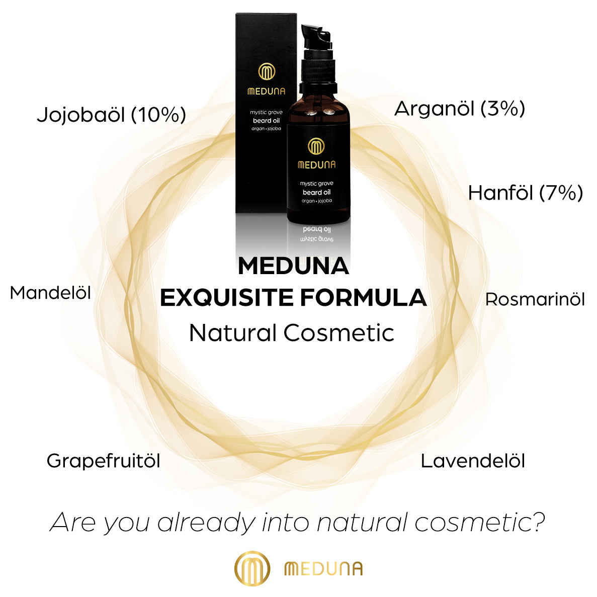 Our “Mystic Grove” beard oil combines the highest quality raw materials such as argan and jojoba oil in the appropriate dosage.